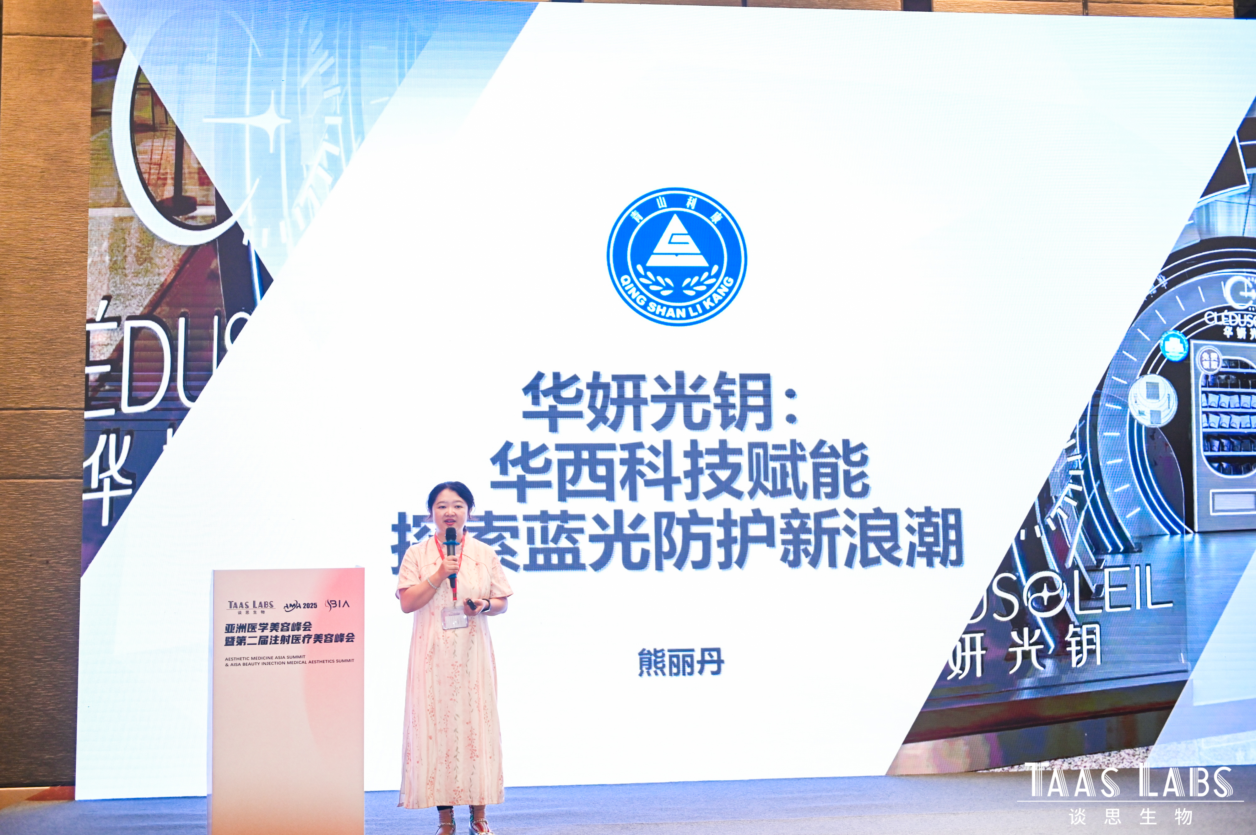 在功效护肤与医用敷料专场,四川大学华西医院化妆品评价中心熊丽丹教授受邀发表主题演讲《从肌理研究出发:皮肤光损伤护肤品新高地》。熊教授以华妍光钥作为产学研结合并成功转化的典型案例,系统阐述了通过对蓝光对于皮肤伤害机理的研究,有针对性的开发蓝光防、修的技术,并构建ARCS产品开发体系成功将技术转化为品牌产品的抗光老全链路研发方案。